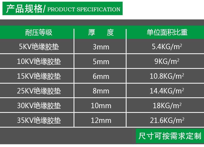 絕緣膠墊又稱為絕緣毯、絕緣墊、絕緣橡膠板、絕緣膠板、絕緣橡膠墊、絕緣地膠、絕緣膠皮、絕緣墊片等,具有較大體積電阻率和耐電擊穿的膠墊。用于配電等工作場合的臺面或鋪地絕緣材料。